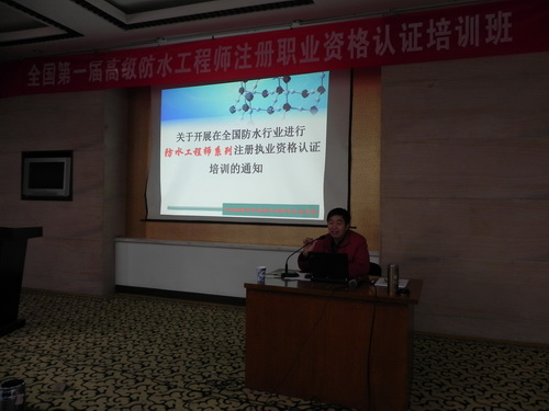 全國第一屆高級防水工程師注冊職業資格認證培訓班于3月18~21日在蘇州華僑飯店成功舉辦,來自全國各地的80余名防水工作者參加了本次培訓班。蘇州中材非礦院防水材料設計研究所所長沈春林教授任主講老師。在3月21日上午,學員進入考場,參加了高級防水工程師注冊職業資格認證的測試,測試結果將于近期公布。成績合格者將取得高級防水工程師注冊職業資格認證的證書。我公司員工也參與了這次培訓。