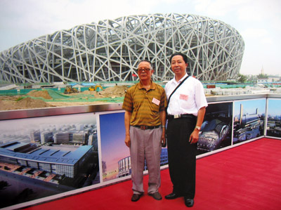 公司王總經理(右)和北京市工程研究院著名防水專家、教授級高級工程師葉林標先生(左)在北京奧運工程進行防水調研。