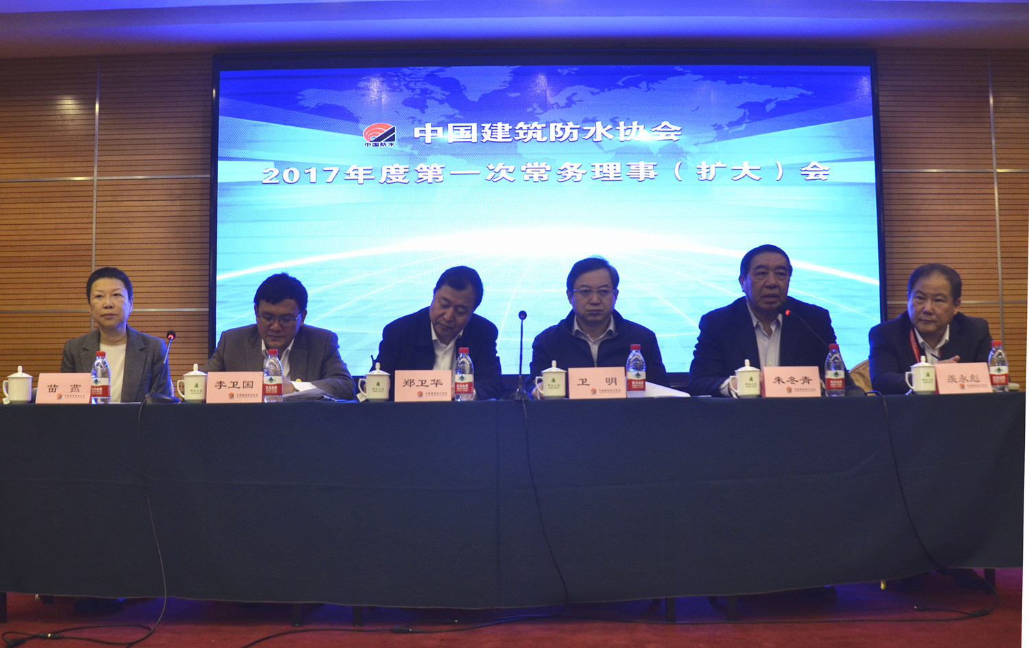 為探討行業全產業鏈質量提升機制,介紹相關產業政策,4月10日上午,中國建筑防水協會2017年度第一次常務理事(擴大)會在北京湖北大廈召開。質檢總局產品質量監督司巡視員鄭衛華,住建部標準定額司副巡視員衛明,中國建筑防水協會會長李衛國、秘書長朱冬青、副會長羨永彪等領導,以及協會正副會長、常務理事、各分會負責人及地方防水社團組織負責人等共百余人出席了此次會議。會議由中國建筑防水協會副會長苗燕主持。我公司深圳市新黑豹建材有限公司也應邀參加了此次會議。 |