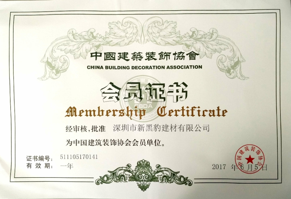 2017年6月5日,經我公司提出申請,由中國建筑裝飾協會委派專業的審核員對我公司進行審核,批準我公司為中國建筑裝飾協會會員單位。