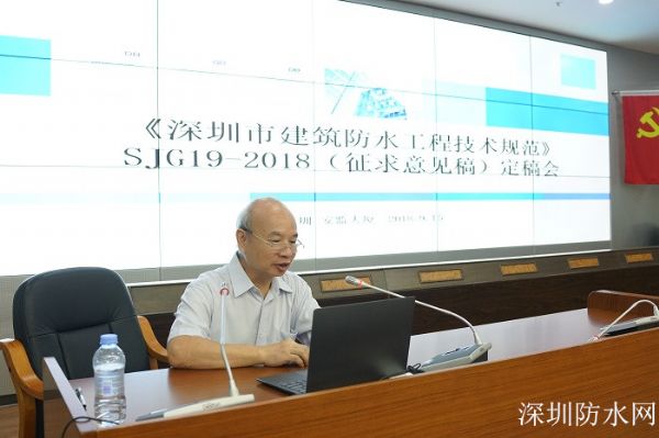 2018年9月15日,深圳市建筑工程質量安全監督總站與深圳市防水行業協會組織相關單位和專家召開“SJG19-2018《深圳市建筑防水工程技術規范》(征求意見稿)定稿會”,會議在深圳市安監大廈10樓會議室。