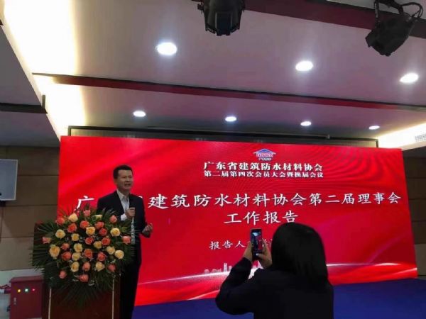 2020年11月28日,廣東省建筑防水材料協會第二屆第四次會員大會暨換屆會議在廣州番禺蓮花山順利召開;  中國建筑防水協會秘書長朱冬青,廣東省建筑材料行業協會常務副會長陳環,廣州質量監督檢測研究院副院長何國山、中國建筑防水協會副會長、深圳市防水行業協會會長瞿培華,中國建筑防水協會副會長、中國建材科研總院蘇州防水研究院院長巢文革,廣東省建筑材料行業協會首席專家吳一岳,中國硅酸鹽學會防水材料專業委員會主任委員沈春林,《中國建筑防水》雜志社執行社長、總編輯徐建月、“中國防水報道”運營總監賀丹等行業領導、專家;廣東省防水企業、媒體代表等100余人出席會議。 這次大會是一次換屆選舉大會,選舉產生了新一屆理事會會長,副會長、秘書長監事長等新一屆領導班子。