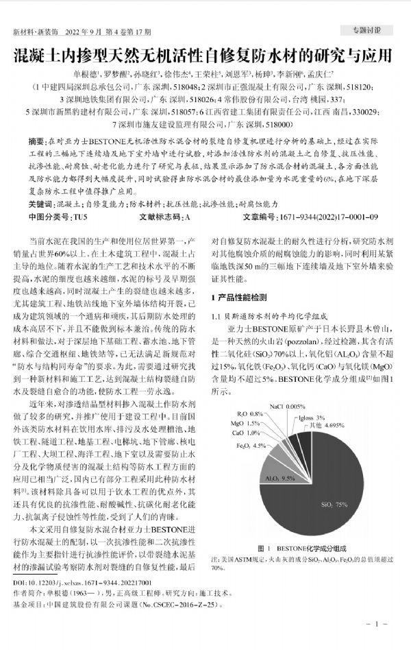 混凝土內摻型天然無機活性自修復防水材的研究與應用