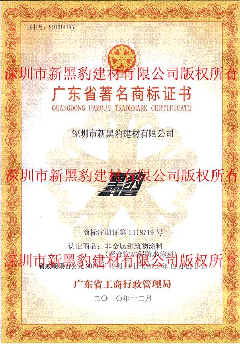 我公司注冊商標“黑豹”被評為廣東省著名商標